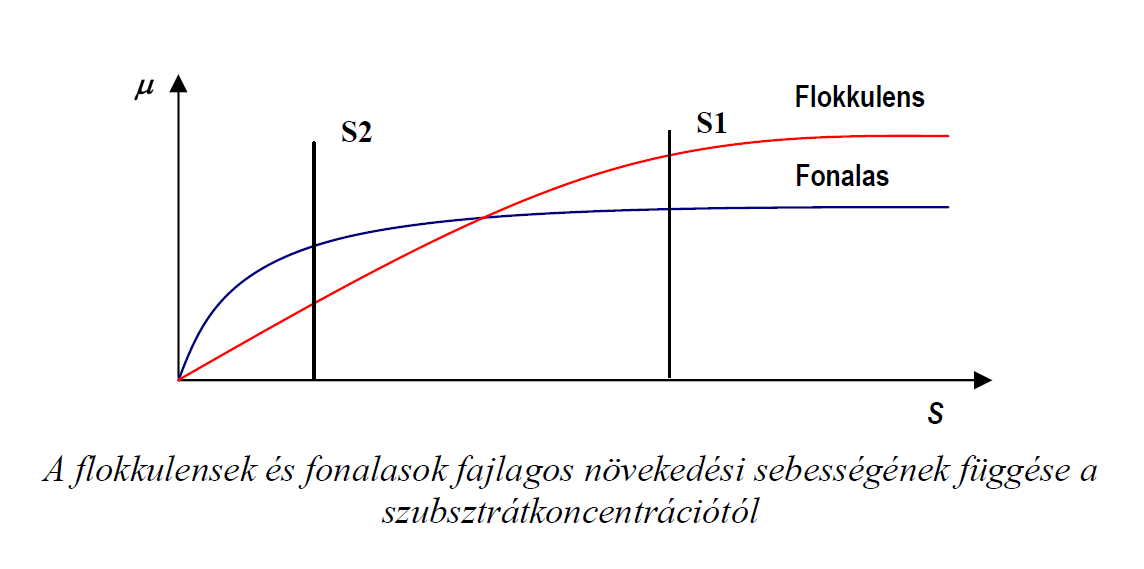 ![]() | A technológusok ráhatása az iszapszerkezetre: -Alacsony tápanyag koncentrációnál a fonalasok előnyhöz jutnak (nagyobb fajlagos felület). -Magas iszapkoncentrációnál a tápanyag hamarabb elfogy- alulterhelés következik be. Cél: lehető legalacsonyabb iszapkoncentrációval üzemelni, amin még a tisztítási hatásfok elfogadható. |